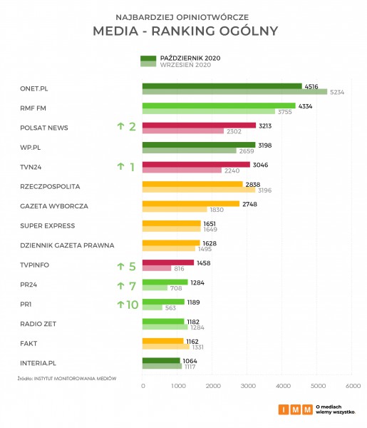 Analizę częstotliwości cytowań poszczególnych mediów przez inne media przeprowadzono na podstawie 49 172 przekazów pochodzących z monitoringu prasy, radia i telewizji, oraz portali internetowych, w których pojawiały się nazwy mediów prasowych; portali internetowych; stacji radiowych i telewizyjnych lub tytuły ich programów. Badanie dotyczy okresu 1-31 października 2020 roku.